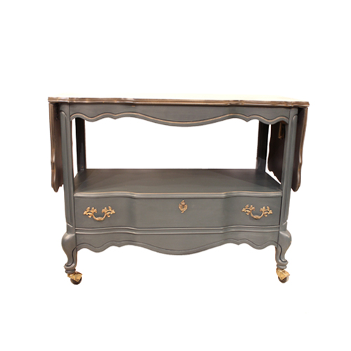 VINTAGE SERVER 色味が画像の色とは異なりますが 本体はブルーグレイ 天板はこげ茶色です バタフライ式の天板 再塗装しましたので 綺麗な仕上がりです * 店頭には 仕上がったばかりの アンティークの什器も 並べました 中に入れる小物を &...