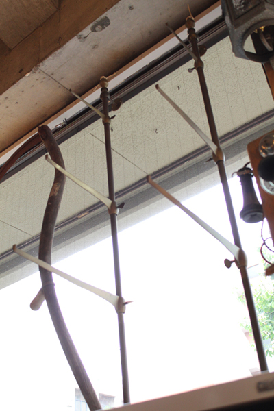 ANTIQUE BRASS SHELF シェルフサポート3対 柱付きです 壁付けにして使用するのですが 丁度いい壁面がないので 窓辺にセッティングしています made in England スキマ家具になりますね (^^) &n...