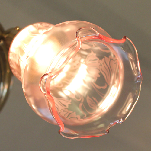 ANTIQUE CEILING LAMP 桜色のガラスシリーズ それぞれのシェードには オンオフのスイッチが付いていて 角度の調節も可能です 3灯のシーリングライト 華やかさ満載の ガラスシェードと真鍮ベースの照明 シャンデリアと ブラケット ...