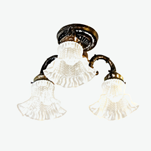 VINTAGE CEILING LAMP 3灯のガラスシェードが 華やかです シャンデリアを付けたいけれど 天井の高さがあまりないので 付けるのが難しく諦めているという方に おすすめです (^^) JUGEMテーマ:アンティーク&インテリア