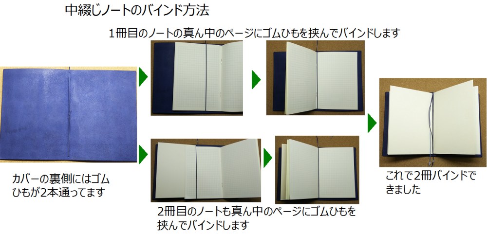 JUGEMテーマ:文房具・ステーショナリー 以前にもジブン手帳をゴムバインド方式の革カバーにバインドする方法を書きましたが、解説写真を新たに撮って続編として解説したいと思います。 ジブン手帳には様々な種類がありますが、いわゆるファーストキットと呼ばれるDIARY、IDEA、LIFEの3冊がセットになったものを対象にいかにしてゴム紐でバインドするかを解説します。 トラベラーズノートのようにゴム紐でリフィルをバインドする場合、通常は中綴じと呼ばれるノートをバインド対象として...