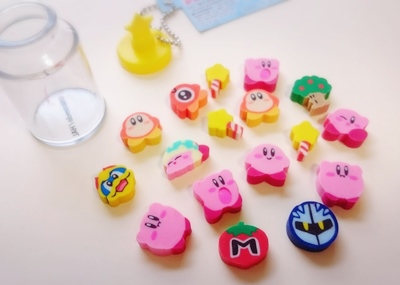 カービィ消しゴムゲットしました* 近所では売っていなくて、めっちゃ遠いローソンまで行ってきたよ。 まわり山だらけでホントに合っているのかドキドキだった…。 店員さんいわく、こういうのって抽選で置く店舗がきまるらしい。 がんばれ!近所のローソンっっ(笑) お客さんが結構いたから詰めるのもそんなに恥ずかしくなく ぎゅうぎゅうに詰めて17個! いやぁー可愛いです。 昔こんな消しゴム集めてたなぁ。懐かしい…! 今回買った消しゴムは使うわけもなく、今は...