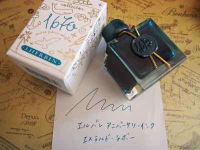 JUGEMテーマ:文房具・ステーショナリー インクはかなり好きなので、ある程度自分に制限をかけて買うようにしているのね。 そうじゃないと底なしに買い続けそうだから…(笑) その制限の一つが「地元のお店であるBUNGBOXさんのオリジナルインクのみ買う」てこと。 色合いが好きだし、なんとなく地元の特別感があるし。 …そう思っていたのについに買ってしまいました。 エルバンのアニバーサリーインク、エメラルド・チボー! 金粉入りのインクということで、気になっていたのですが万年筆にはあまり...