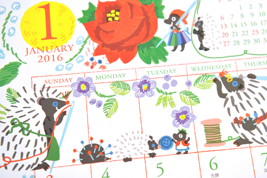 あたらしい年をむかえて、もう半ば過ぎ。 大寒の大雪もあり、冬らしいこの頃ですね。 お待たせしました♪ etocotoカレンダー2016の1月のおはなしと、探し絵遊びの答えをお届けします^^ まだ外は真っ白い雪景色。 ほら穴の奥にあるはりねずみ夫婦の工房では、 今日もちくちく針仕事。 もうすぐ来る春が待ち遠しくなるような、 心がはなやぐお花たちを美しく縫っていきます。 まっしろいクロスに、赤、緑、うすむらさき、黄色、、と色とりどりの糸が踊ります。 刺繍糸で春を想いながら、ちくちくちく…! 部屋...