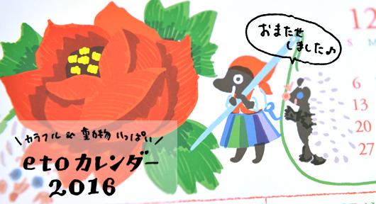 いよいよ12月!etoカレンダー2015もとうとう最後の月に。 真っ赤×白×青×グレイ。 ひつじさんのクリスマスです〜。北欧のミトンや靴下などと一緒に。 さてさて、ここで告知し忘れておりました! etoカレンダー2016、好評発売中です〜! アートプリントジャパンさんで発売中。おかげさまで6年目!の壁掛けカレンダーです。 結構大判なのですが、スケジュール部分が大きくてとにかく書き込みしやすいんです。 特に、お子様がいらっしゃるご家庭にもオススメ。 カラフルで、いろんな動物がやってきま...