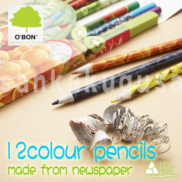 JUGEMテーマ:文房具・ステーショナリー 新聞紙でできた色鉛筆・フルーツ12色セット O’BON(オーボン)鉛筆は、主に中国国内の廃棄された古新聞を素材に作られています。 紙製といっても、濡れたらしわくちゃになることはありません。 書き味、耐久性は、木の色鉛筆と変わりはありません。 でも、鉛筆を削ってみると、螺旋のようにつながって出てくる削りかすには、 新聞の文字がはっきり見えます。 エコ、リサイクルが目で見て実感できる素敵な色鉛筆です!! ↓ ↓ ↓ ↓ ↓ http://store.sh...