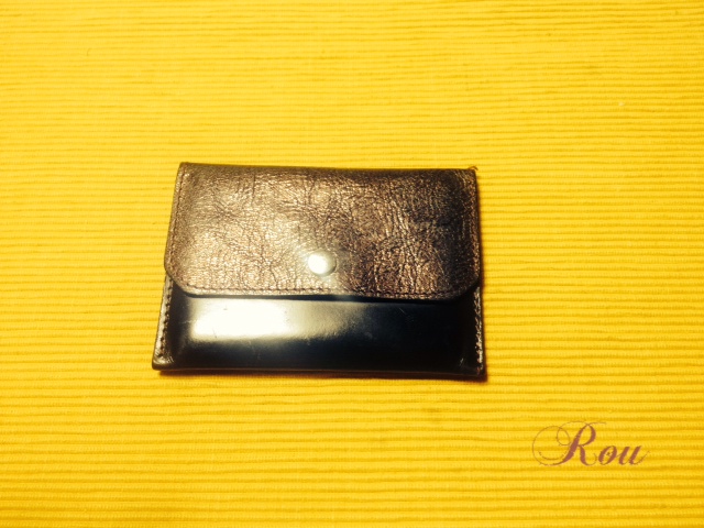 照明でてかっているけれど、スムースレザーのネームカードケース。 マチはなく、うすべったい。うしろにポケットひとつ。 名刺と定期(PASMO)とジムのカードが入っている。 すぐいただいた名刺をため込んでしまうので薄いタイプにした。 バッグの中に放り込んでいるし、毎日何度も出し入れするのですぐ傷む。 フラップはしぼ革で、メタリックブラウンなのだが、あっという間に擦れが目立ってきた。 1年使ったので考えようかな。 入手:2014年6月 JUGEMテーマ:文房具・ステーショナリー