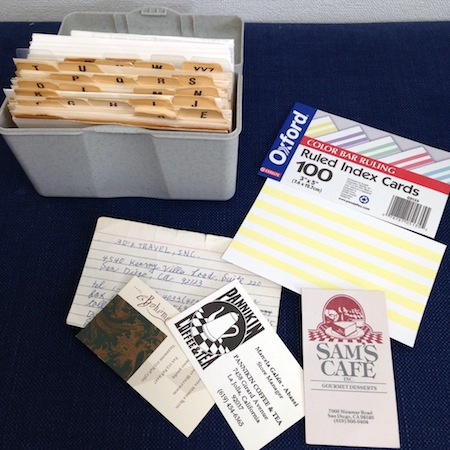 JUGEMテーマ:文房具・ステーショナリー かれこれ、20年ほど使っているカード&ボックス アメリカの「STAPLES」で購入しました。 主に、アドレスカードとして、使ってます。 友人から、引越のお知らせがくれば 新しいカードに書き換え、古い住所を書いたカードは捨てます。 勤め先のカードをもらえば、一緒にホッチキスでパチン お店のカードをもらえば、そのままボックスに入れます。 アドレス手帳代わりの、アドレスカードとして 大変便利です。 今では、日本でも買えるので ボックスやカード...