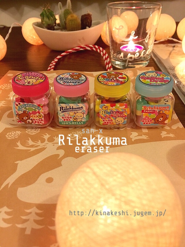 JUGEMテーマ:文房具・ステーショナリー リラックマのボトル入り消しゴム。 この消しゴムの発売予告を見つけた時は本当に嬉しかったです! 『四角い消しゴムじゃない!(*≧∀≦)』 って。 サンエックス リラックマケース入り消しゴム。 全4種 各350円+税 リラックマのミニ消しゴムがケースの中に沢山! ↓こちらのお店は少しお安くなっています♪ 小さなキャンデーみたいで可愛いですよ〜(*≧∪≦) リラックマはサンエックスの顔と言える代...