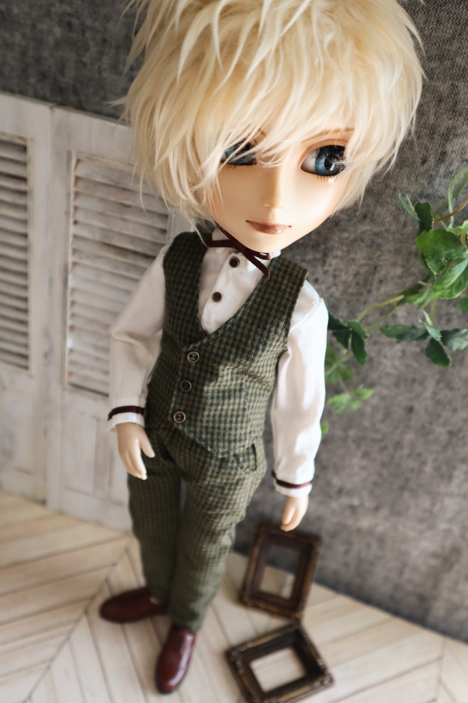 JUGEMテーマ:ドール 影丸君の写真。 以前載せたスーツセットに新しくシャツをつけてみたり。 最近リボンを縫い付けたシャツにはまっています。 髪をいつもよりくしゅくしゅにしてみたり。 お人形のくに様にお洋服を発送しました。 近いうちにまた更新出来たらなと思います。 では…。