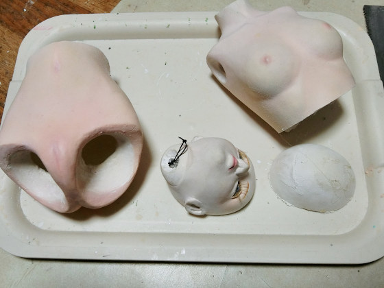 自分が粘土で最初につくったオリジナル球体関節人形 ayumi のリメイク作業がまたちょっとだけすすんだ。今見ても良くできているな、頑張ってたなとは思うけど、さすがに15年過ぎた今見ると気になる点も多い。 ばらばらにしたパーツのうち胴体は分割して越関節をつくります。あとヘッドパーツも分割してアイやウイッグは交換できるように変更します。 最初の頃は球体関節人形って、早い話が「フィギュアに関節つけて動くようにすればいいんだろ」ぐらいに思っていたので、関節自体もわりあい適当...
