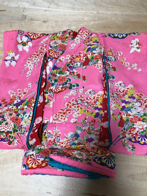 JUGEMテーマ:ドール オーダーを頂きましたビスクドールのお嬢様のお着物 お嬢様はジュモー60cmほどでございます お名前アンジェちゃん とっても可愛いアンジェちゃんにお誂えするのに お母さまとご相談しながら進めさせて頂きました お話合いでピンク系がお似合いとお探しいた綸子のアンティーク地 地模様のある花車と唐子人形の柄のお着物です 少し柄が飛んでおりましたので、剥ぎながら詰めてお仕立ていたしました お襦袢はお袖別布仕立てです 綸子の絞り...