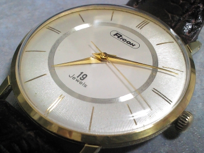 JUGEMテーマ:腕時計 リコー 19石 RICHOロゴの丸囲みが強烈なインパクトを醸し出している。 リコー時計でこのようなデザインは初めて見た。 シチズンなどでは時々見かける気がするが・・・ しかしながらこのモデル、文字盤以外はほぼタカノという珍品。 裏蓋はシャトー型ケースによくある刻印だが、形状は一般的な椀型 ではなく皿型で珍しい。 シャトー型 cal.521 11.5型 19石 機械はまずまずの状態。 ...