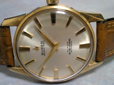 JUGEMテーマ:腕時計 今回も洋食でいってみま〜す! ビューレン スーパースレンダー自動巻き アンティークの魅力は色んな機構の機械があって楽しいんですね。 ビューレンは1954年にマイクロローターを開発し同年6月に特許を 取得、スーパースレンダーは1957年に発売された。 これがマイクロローターを搭載した Cal.1000A 25石 見ていて飽きない感じが好きですね〜 機械萌え〜 です。