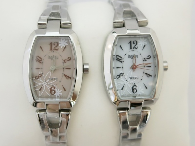 こんにちは、Kです。 3月と4月は高校や大学のご入学や、ご就職のお祝いなどに、 時計をお探しの方が多くいらっしゃる季節です。 そんな本日は、可愛いレディースウォッチをご紹介します。 左:SEIKO ALBA アンジェーヌ AHJD058 右:SEIKO ALBA アンジェーヌ AHJD061 売り切れました。 トノー型は少し大人っぽい雰囲気になりますね。 しっかりとした10気圧防水で、お水使いもOK! ソーラー時計なので電池交換不要です。 もう少しアップにしてみると… 文字盤に可愛いお花柄がプリントされています♪ ...