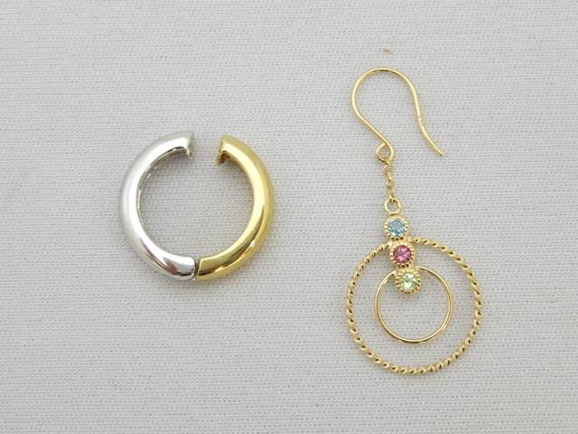 こんにちは、Kです。ポカポカ陽気で気持ちの良い毎日ですね。さて本日は、お客様から頂いた“素敵なアイディア”のお話です。いつもお洒落なIさまは、ピアスホールを開けていらっしゃらないため、耳元のジュエリーはピアリングをご愛用です。でもピアリングは「揺れるタイプが少ないし、ちょっとつまらない…。」とお考えだったIさま。そんなIさまのお目に留まったのがフックピアスです。「これを加工したら、ピアリングのパーツにならない?」とのこと。私たちスタッフは目からウロコ…(*_*)そ・こ・で、作っちゃいました!まず、シンプル...