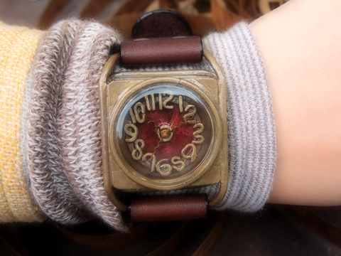 秋も深まり、そろそろ冷えが気になる季節。 お出掛けのときにもニットなどを重ねて、寒さに備えたいもの。 そんなほっこり暖かコーデにも負けない、 Mari Goto マリゴトウのボリューミーで可愛い手作り腕時計をご紹介致します。 【Mari Goto 大きい四角のハンドメイド腕時計 kaku red ¥21,800】 ちょっとレトロな雰囲気の、可愛くかつ格好いいデザイン。 重厚なスクエア型のケースに、深みのあるレッドのインデックス。 線材を曲げて作られた温かみあるアラビア数字と、波打つ針がユニークな腕時計です。 ...