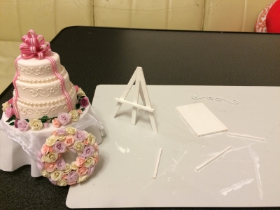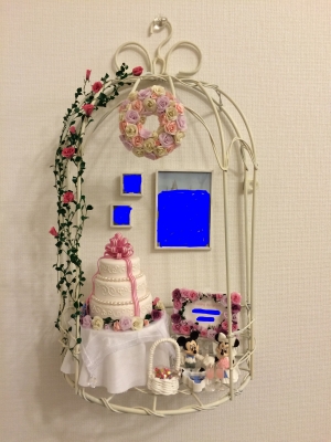 JUGEMテーマ:話題のおもちゃ・コレクション こんばんは。あにゅです。 前回の続きですが ケーキ、花、リースまで作ったので 今度はウェルカムボードだ、と言うことで 檜とバルサで作って、アクリルで白く塗ってみました。 飾りのピエールの髭みたいなのは針金です。 印刷した紙をはさみこんで組み立てて あちこち荒が目立つのは華麗にスルーしていただきたい(-ω-) 乗っけてみるとこんな感じ。 大量生産したバラを飾り付けて・・・ ここでバラだけだとくどくなる事にやっと気づく(...