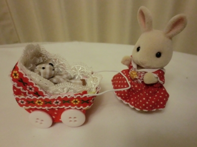 みなさま、おはようございます 今日は祝日うれしいな〜 昨日は作り方だけでブログが長くなってしまったので今日はかわいい写真を〜 まず、このベビーカーですが、タイヤがボタン貼り付けただけなことから伝わるように(?) こどもたちの遊ぶおもちゃとして作り始めました! よくこうやっておにんぎょうさんを乗せておかあさんごっこしたりしましたよね で、中にシルバニアのゆりかごのお布団を敷いて、、 赤ちゃんも乗りました!ぴったりサイズ!! お座りしてもかわいい〜 おねえちゃんがおしてくれ...