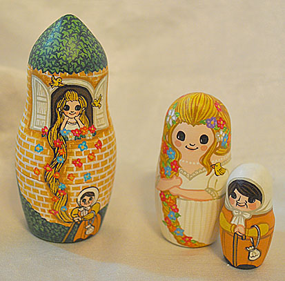 1番大きなサイズに 中からでてくる登場人物が描かれているシリーズ。 窓の外は雪ですが 一足早く、春を感じたく 色とりどりのお花で飾った ラプンツェルの マトリョーシカを作ってみました! JUGEMテーマ:マトリョーシカ