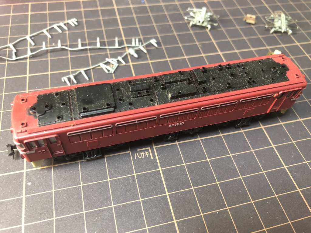 JUGEMテーマ:鉄道模型 どうも、まゆねこです。 先日、導入したEF70をお掃除しました。車輪は輝きを失い屋根上にはホコリ。試運転してみるもやっぱりギクシャク...というか、急に走ったり止まったり。 というわけでお掃除しました。 ※模型の分解は自己責任でお願いします。 今回使った道具・パーツ類は以下の通りです。 ・紙やすり 2000番 ・コンパウンド(細目) ・+ドライバー #00 ・ケガキ ・ピンバイス 0.8mm ・テールライトレンズ(銀河モデ...