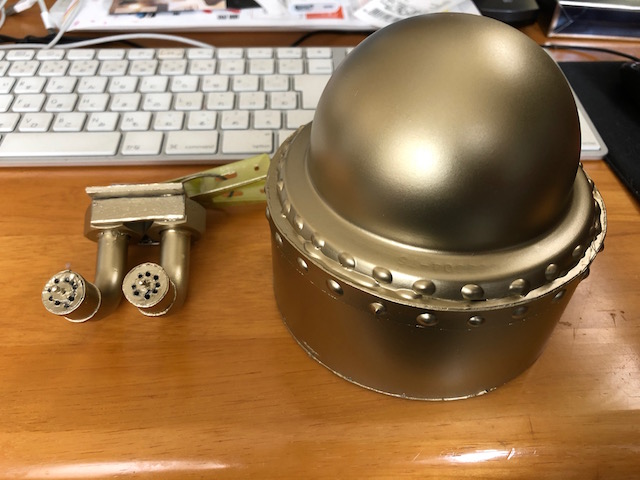 JUGEMテーマ:鉄道模型 2020年4月19日、大変ですタイヘンです、私突然大金持ちになりました (;´∀`) ワンコの散歩で山に入ったら、「ワンワン」といかにもここを掘れとばかりに吠える場所にあったのは、、、 黄金色に輝く物体 数億円は価値のある金無垢(むく)の塊が出現、、、、、、てね 煙突も塗ってみました 左側の金色の蒸気ドームは、大砲が上にひん曲がったジブリ作品の砲塔のようにも見えます。(実はその...