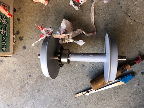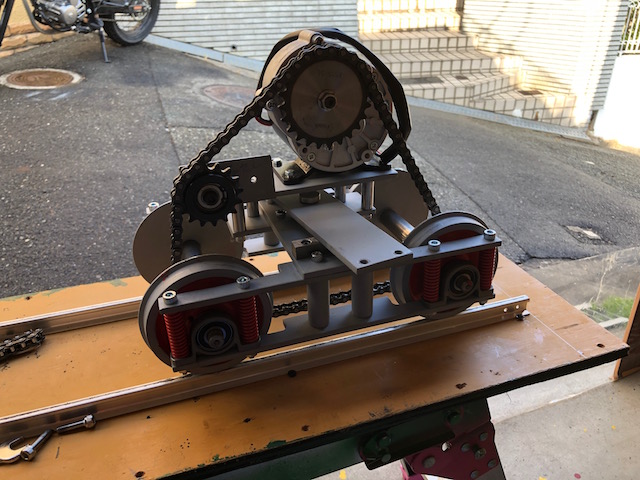JUGEMテーマ:鉄道模型 2020年3月5日、前日の鋼材手切りが祟ったのか、手や肩が痛くて工作は午後の遅くから簡単なものだけやりました。 まず台車に付けていなかったチェーンを張り、稼働可能な状態に戻しました。 これでまた動きます 各軸についているスプロケットの位置も一直線に合うように調整し、動力のロスが出ないようにしました。 台車とフレームの取り付けは、フレームに下向きに突き出すようにボルトを取り付けました。 現場で...