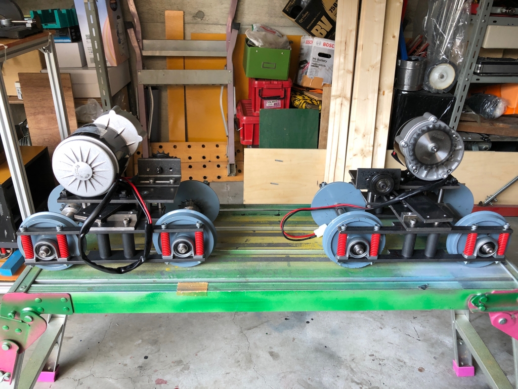JUGEMテーマ:鉄道模型 2020年2月5日、台車の工作を続けます。 350Wのギヤードモーターについていた標準ギヤーを、歯数の多い(減速比を小さくする)物に交換します。 Kさんが新幹線用に 先行して作った台車 まだ未塗装のFRPボディー Kさんが試験走行したところ、新幹線らしい速度が得られなかったので、スピードアップのためにギヤーを交換した方が良いとのことでした。 私は今のところ新幹線ではなく機関車として製作するつ...
