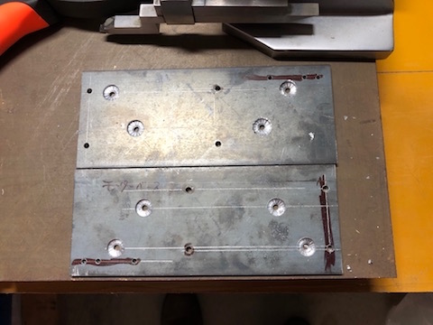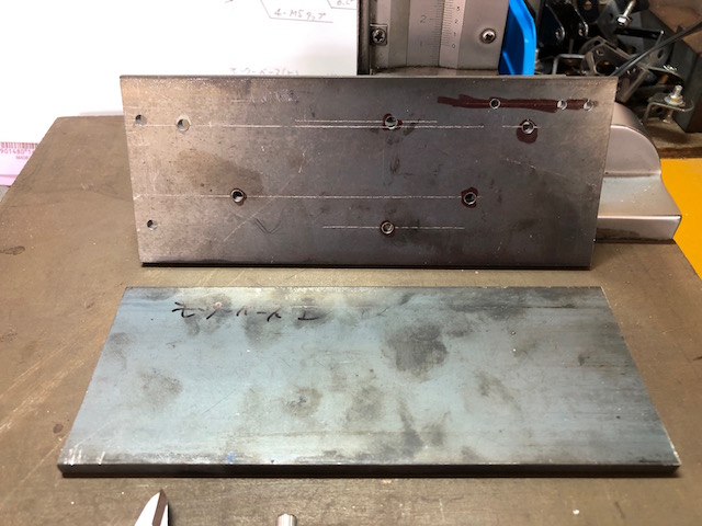 JUGEMテーマ:鉄道模型 2020年1月27日、昨日穴あけをしたプレートの2枚目の作業です。 奥が昨日穴あけを済ませたプレート 手前が今日の作業分 罫書きました 寸法出しは、正確を期して定盤の上で作業をします。 「正確」に寸法を出していますが、穴あけの後で測ってみるとどうしても100分の数ミリはズレています ( ̄□ ̄;) これで本当に完成するのでしょうか、、、とても不安です。 木工でもカンナ屑や木屑が出ますが、金属工作では...
