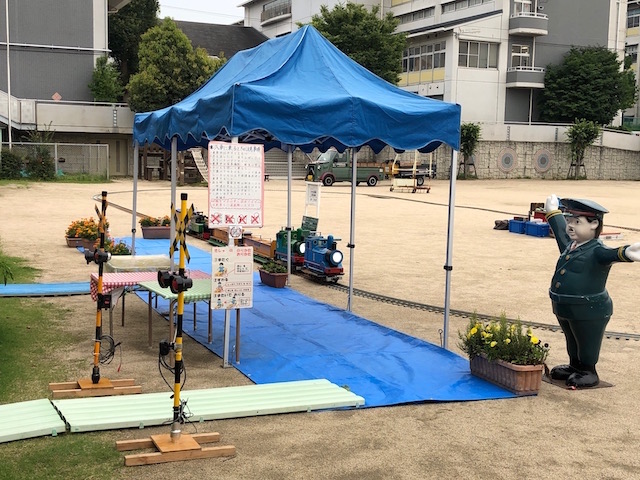 JUGEMテーマ:鉄道模型 2019年8月3日、阪南市の桃の木台自治会の夏祭りで運転会をしました。 場所は桃の木台中央公園と隣接する小学校の校庭で、私のまほろば王立鉄道は校庭の方で線路を敷設しました。 3カ所の自治会の連合が主催で夏祭りをされていて、数多い出店(当て物・食べ物・かき氷等)は全てが地域の自治会のメンバーがされていて、手作りながら数も質も一流だと思います、すごいの一言では片付けられません。 開店準備中 メインの...