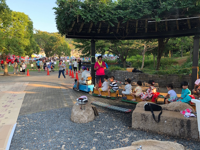 JUGEMテーマ:鉄道模型 2018年6月末日、8月に阪南市行われる自治会まつりの下見に行ってきました。 もう何年も運転会をさせていただいてるイベントで、市内の大きな公園でのお祭りなので普通なら下見は必要がないのですが、今年は同じ公園ながら場所が少々移動となったためです。 広大な芝生の広場から石張りの下地の場所に変更です。 目に優しい芝生張り 自治会の役員さんが運転して 地域の人を運びます 地元のおじさんが運転する列車は大変好評...