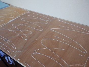 あらかた枠組みが出来たところで、土台を作りました。 元々、家にTOMIXのレイアウトボードが2枚あったので、それを使うことにして 新たに2枚追加しました。 この4枚を並べると240cm×90cmの大きさになります。 そのボードの上に木工用ボンドを塗ります。 その上にスタイロフォームを載せます。 用意したスタイロフォームは25mm厚のもの。 重石代わりに部屋にある重たい箱を載せておきました。 スタイロフォームは走行...