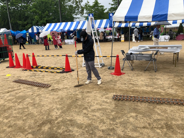 JUGEMテーマ:鉄道模型 2018年5月13日、堺市東区の区民まつり今年で2年目の参加です。 5月に入っての久しぶりの運転会でしたので、期待感はマックス100% ところが長期予報では当日は「雨」との御宣託! 嫌だけど最近の予報は当たるんだね。 しかし、ここは「晴れ男」を自負する自分の力を信じ、颯爽と早朝から会場に乗り込みます。 前回の運転会に引き続き息子が手伝ってくれます 力があるので頼もしい助っ人 長期予報通り雲行きは怪しい...