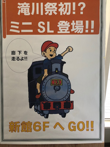 JUGEMテーマ:鉄道模型 1918年6月16日17日、神戸滝川学園の学園祭に出張運転会をしてきました。 学園創立100周年を記念して、我が「まほろば王国」にお声掛けいただいたのです。 こんなポスターを作ってもらいました もちろん「まほ鉄」も駅名板を用意しました 線路の敷設場所は6階建ての校舎の6階廊下、総延長61,5mの直線の往復です。 往復だと120mとなり、相当走りごたえがあります。 いつも通り先頭をD51後部をトーマスとし、マ...
