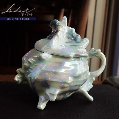 1794年にドイツのTettauに設立されたRoyal Bayreuthのシェルの形を模したシュガーポットです。 白地にメタリックなブルーのカラーリングで、とても上品な作りです。 また、白地部分には、真珠毋の貝殻の内側に見られるような、優しい虹色の輝きが見られます。 お揃いのスプーンもセットになっております。 &...