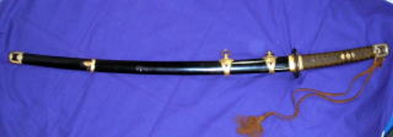 JUGEMテーマ:アンティーク 旧日本帝国海軍士官用の軍刀で実物です。佩鐶は二つありますので戦争末期のものではありません。地元の先祖が武士の家系で海軍軍人だった旧家からの蔵出し品です。古いものなので、兜金、佩鐶、石突等のさび、責金のずれ等があります。刀身も古いものなので多少時代のさびがあり少しがたつきますが切れます(広島県の登録証付き)。全長97センチ、刀身53.9センチ。