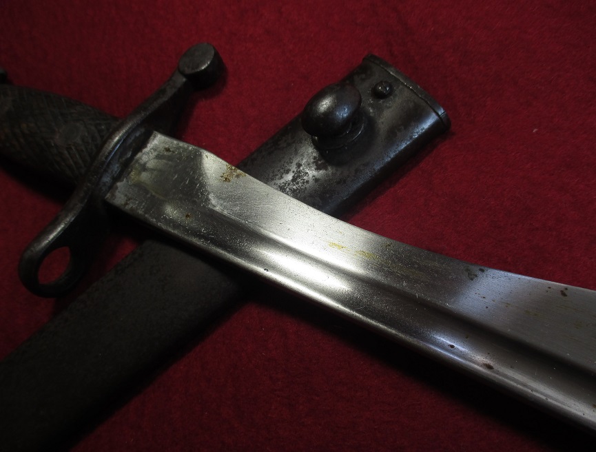 JUGEMテーマ:アンティーク スペイン軍の銃剣(ボロ・バヨネット=Bolo Bayonet)の実物ですが、かなり古いものです。刀身は鉄製で厚くがっしりしています。銃剣の全長は39.5?、刀身24.9?です。重さ740g。 【詳細説明】