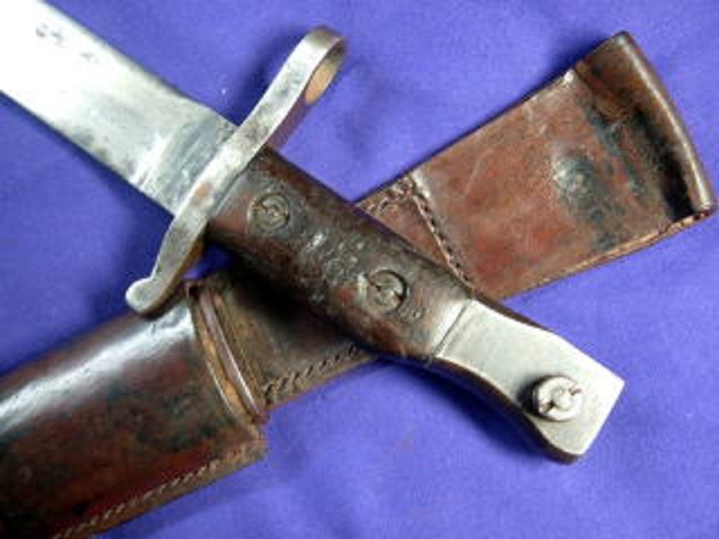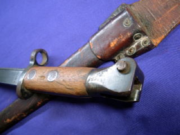 JUGEMテーマ:アンティーク 第一次世界大戦で使用されたロス・ライフルM1910のMK2銃剣です。90年以上前(1910年代)のものです。刀身も鉄製で当時のものです。柄は時代のくすみがありますが硬木と鉄製です。革鞘は全体的にきれいです。革鞘を含めた全長は42?、銃剣の全長は37?、刀身25.5?です。重さ660g。