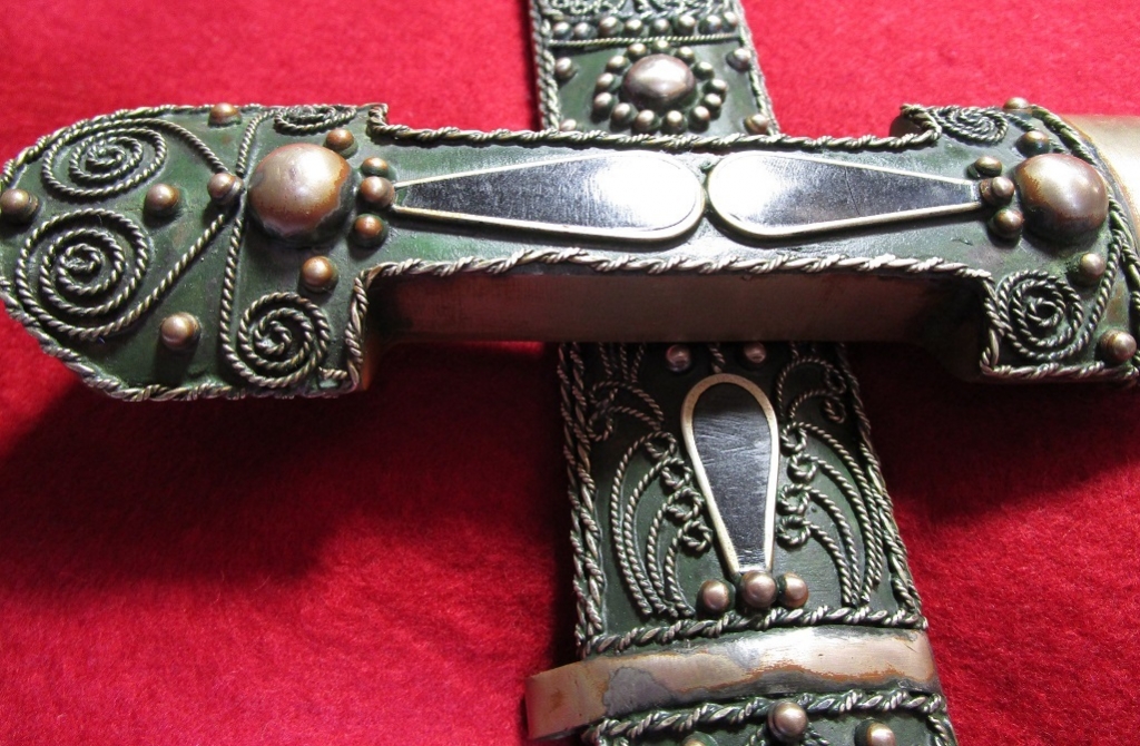 JUGEMテーマ:アンティーク ロシアの両刃の大型短剣、キンジャールの実物です。刀身は頑丈な鉄です。ロシアのコーカサス地方の伝統的な短剣で、コサックも用いていました。全長51センチ、重さ560グラム。