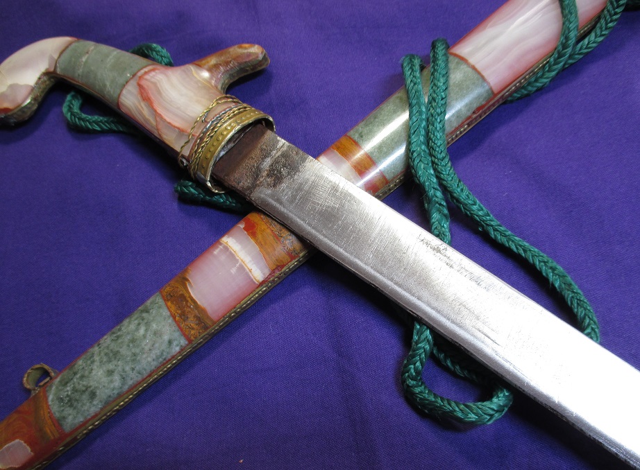 JUGEMテーマ:アンティーク 柄と鞘は、ローズピンク、グリーン、ブラウンねどの多彩な大理石が貼りつけてあります。全長63センチ、刀身41センチ、重さ780グラム。【詳細説明】