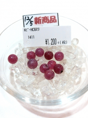 JUGEMテーマ:天然石アクセサリー JUGEMテーマ:鉱石鉱物 こんにちは〜! 土曜日に珍しい!2回目更新でございます^0^ 池袋ミネラル行き損ねた(;;)伊藤がお送り致します〜! ううう、佐々木嬢におつかい頼みます! 今日朝佐々木嬢が紹介してくれた新商品ですが、 皆大好きハイクラスビーズもありますよ!ということでさささと載せます〜☆ ルビーHC6ミリ ¥1200+(税) おおう! 素敵にまっかっかなルビーがきました〜! 一部、透明感があるものも☆たまらんです! 今、¥640+(税)のラ...