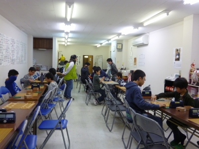 この日は、初心者から有段者まで20人の人たちが集まってくれました!! この日の注目はとある親子! 最初通い始めた頃は、子供は1年生で15級か入門(記憶があやふや?)で保護者は9級くらいで2枚落ちの手合いでした・・・ が今は角落ちの手合いまで子供が追い詰めて来ました! そんななか、保護者はAクラスで昇級試験!子供はBクラスで昇級試験! その結果、保護者は昇級ならず、子供は昇級でついに1級差に! ということは、次回以降のリーグ戦では、先手後手はあるもののついに平手へ! 子供が保護者...