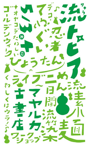 5/3から京都で開催されるイベント「流トピア」に、 忍ジャム研究所がゴム手裏剣の的当てゲームを出展します。 現段階では、忍ジャム研究員がヒイヒイ言いながら的を作っている状況ですが、 思いっきりゴム手裏剣を投げてみたい方は、是非お越しくだいませ。 「流トピア」詳細は以下の通り ******************************************************************* 手ぬぐい+ひょうたん+流しそうめんの楽しいコラボ「流トピア」 ほんわか&爽やかな二日間です。是非お越しください。 [日程] 2014年 5月3日[...