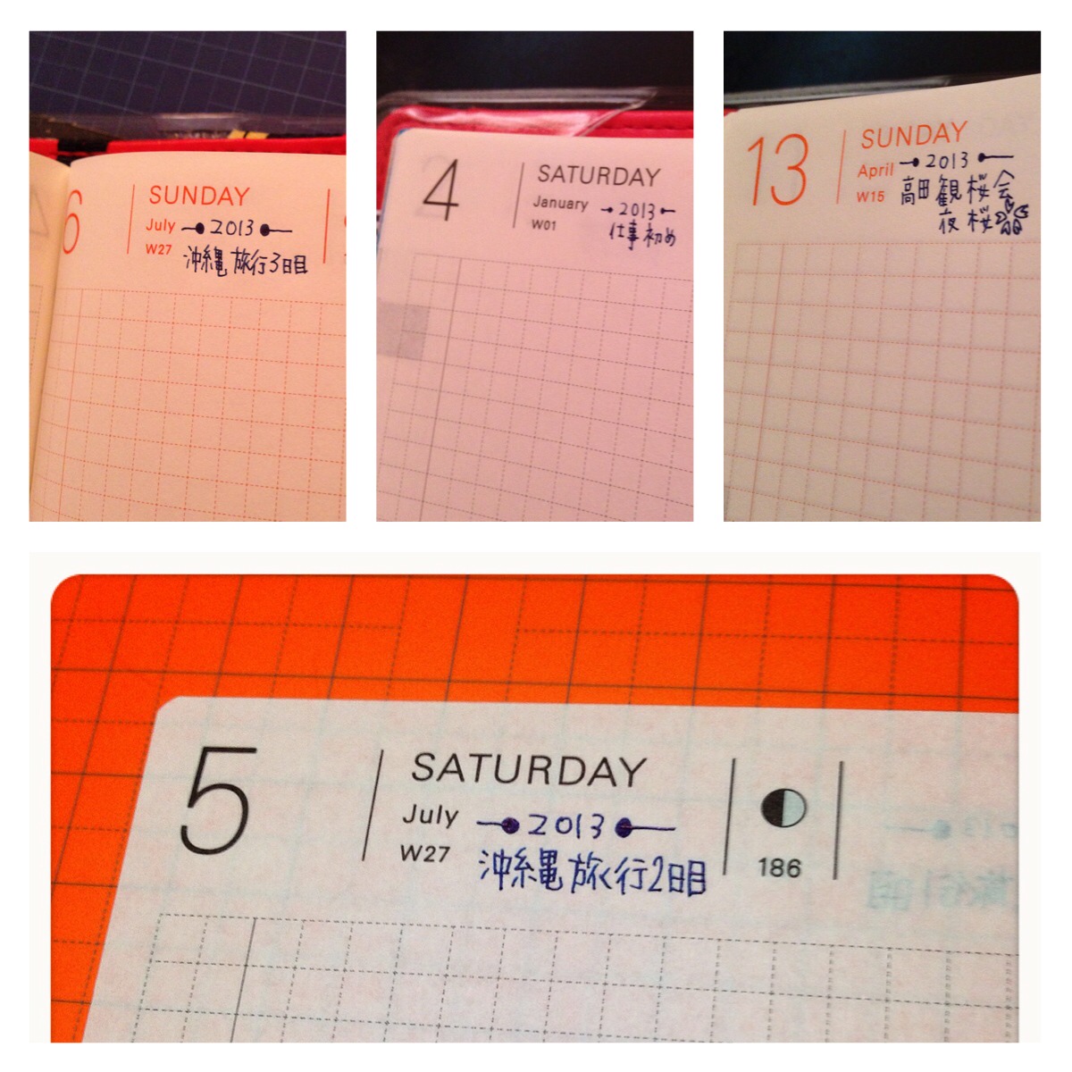 12月になったー! ということで、2014年版ほぼ日が使い始められるのですが、1日ページは2013年版が終わってから使い始めます。 毎年、2日で1ページになっている12月ページは書き込まず、気になった新聞の記事や雑誌を切り抜いて貼るページにしています。 なのでまだ2014年版の準備を。 今回は 前の年のその日にあったことを1日ページに書きました。 すべてのページに書いている訳ではなくて、特筆すべきことがあった日に書いています。 この使い方、ほぼ日手帳を使い始めた時に、ネットで見かけた使い方を真似して、毎...