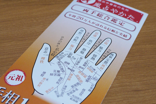 JUGEMテーマ:手相 昨日の記事でも載せたように いきなり解雇され、行き詰ってしまった私は何かにすがりたかった。 っで、行き着いた先は「占い」だった。 中華街へ行ったとき何気なく入った手相占い。 手ごろな値段で見てもらえる。 そういえば前回占ってもらったとき 転職に踏み切る覚悟を決めた時だった。 その時も背中を押してもらいたかったんだよなぁ。 特に何に悩んでいるとかも告げず、生年月日と手相を見てもらうだけ。 最初は「そんなんでわかるの?」っと思ったのだが… ドンピシャだったのだ。 利き手で...