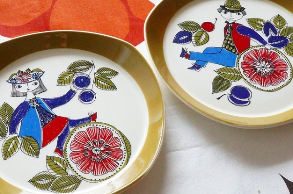 JUGEMテーマ:北欧食器 Figgjo(フィッギオ)Corsica(コルシカ) プレート suosikki北欧雑貨店 店主です。 こんにちは。 北欧ノルウェーのとても可愛いい、ヴィンテージ食器が届きました。 男の子と女の子、フルーツの絵 デザインは人気デザイナー「Turi Gramstad Oliver チューリ・グラムスタッド・オリヴァー」によるものです。 落ち着いた中にも、艶やかさのある明るい色とデザインは、アラビアなど他のヴィンテージ食器とはまた違う魅力があります。 2枚とも、ヴィンテージコンディション良好で...