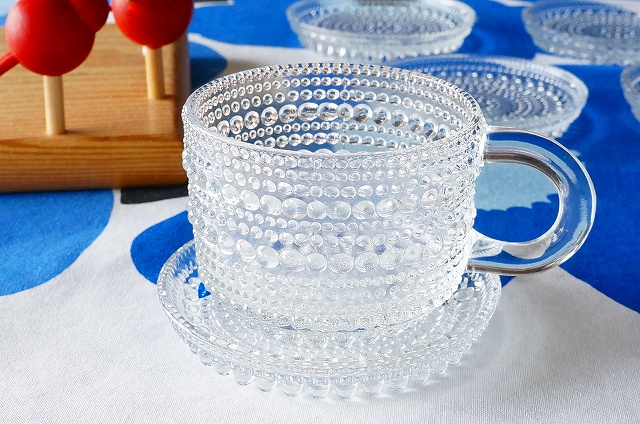 JUGEMテーマ:北欧食器 NUUTAJARVI(ヌータヤルヴィ)Kastehelmi(カステヘルミ)カップ&ソーサー suosikki北欧雑貨店 店主です。 北欧のガラス食器【カステヘルミ】 1964年にオイヴァ・トイッカによってデザインされたフィンランドで最も愛されているデザインです。 ガラスの表面全体に施された雫のような粒は、ガラスの継ぎ目を隠す為に全体に雫の粒を施したものなのだそうです。 カップをよく見てみますと継ぎ目縦のラインがありますが、粒粒でほぼ分からなくなっています。 雫の粒を全体にデザインす...