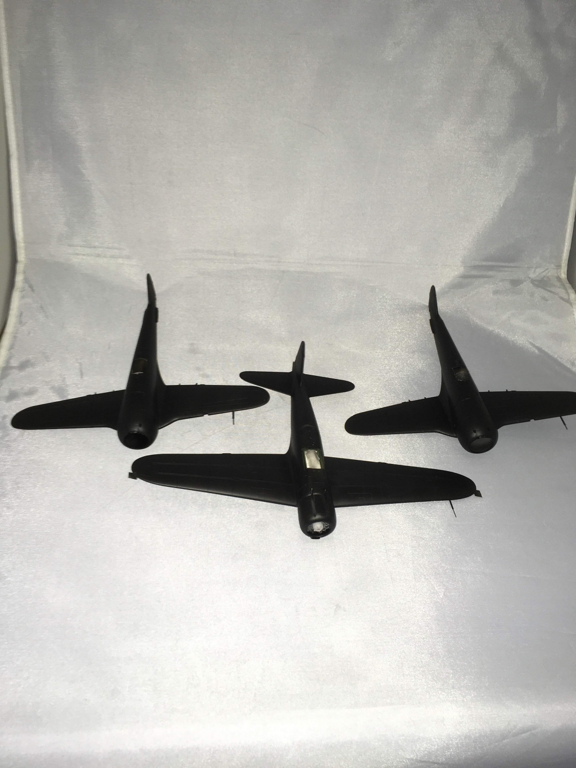 JUGEMテーマ:プラモデル JUGEMテーマ:ラジコン・模型 いらっしゃいませ る〜む335 です 前回の捨てサフの続きです。 黒サフ吹きました。 光沢仕上げを考えているので調べたところ #2000の耐水ペーパーではまだ研磨力が強いそうです クレオスのラプロス#6000の水研ぎが良いそうなので 明日ラプロスを買いに行ってきます もっと寄せて取ればよかったのですが流石に表面は綺麗です!! 今机の上は「闇夜の鴉」部隊の様相です。 デワデワ!! ************************...