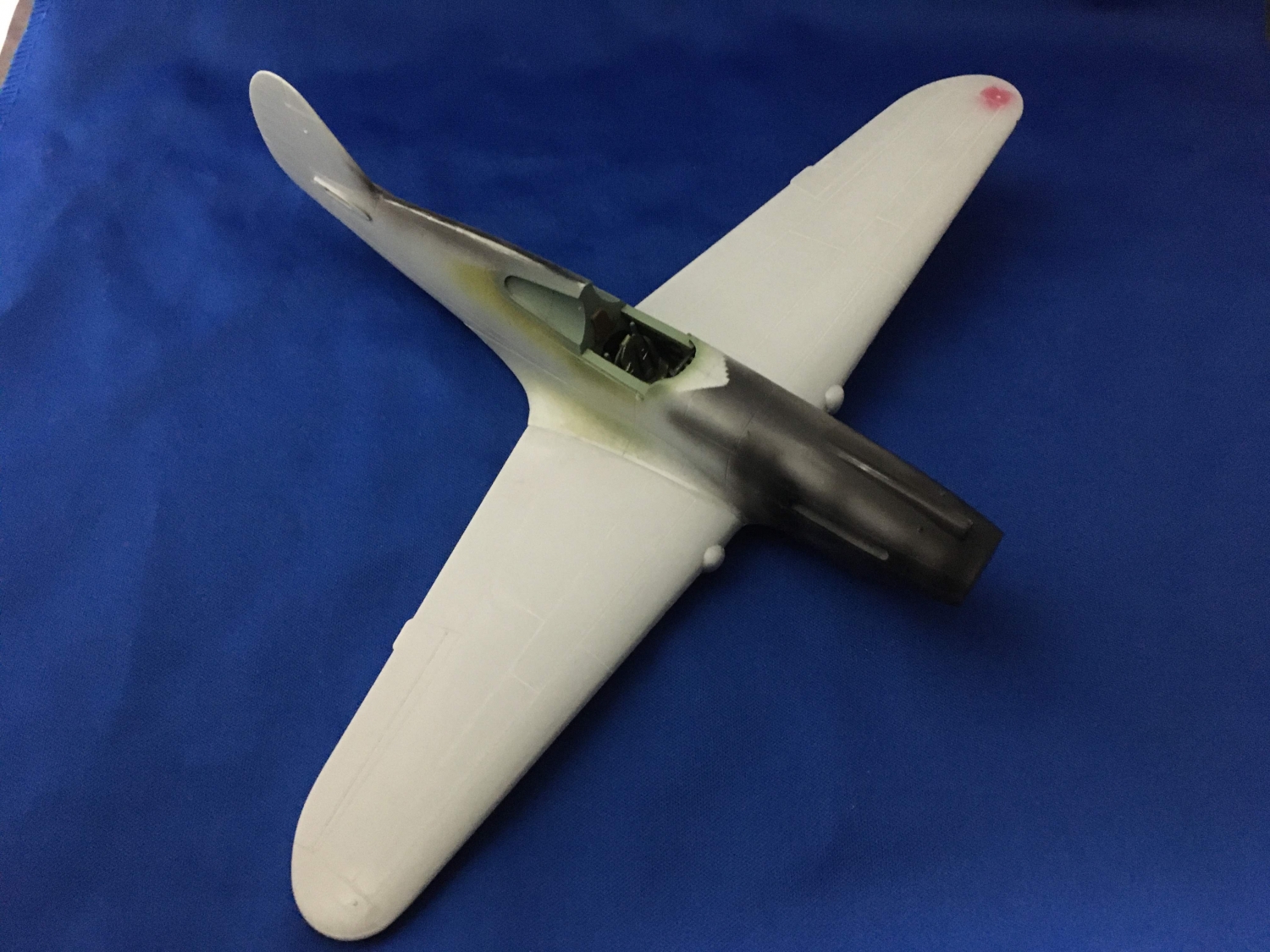 JUGEMテーマ:プラモデル JUGEMテーマ:ラジコン・模型 注意:この作品は2014年展示会出品作品です いらっしゃいませ、『る〜む335』です タミヤムスタング下地の黒を塗り、機首のブルーを塗りました。 胴体は鑢掛けの跡をチェックするのに部分的に銀を塗りました。 その上にガイアカラー「アルティメットブラック」を下地に塗りました。 後方から既にメタリックぽくなってます。 もう一枚。 順番に仕上げていきます。 デワデワ!!...