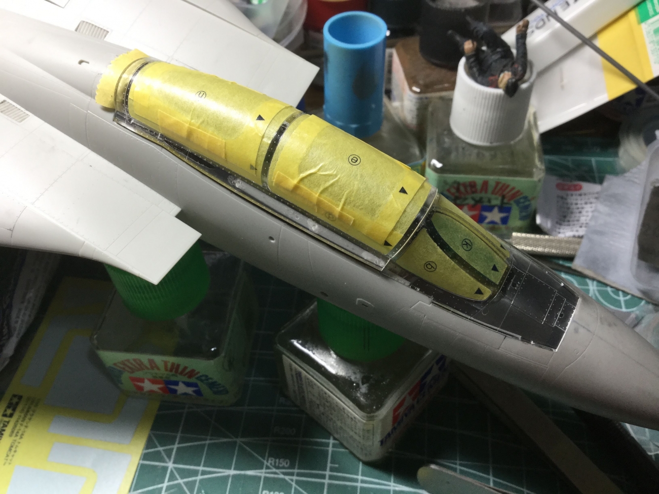 JUGEMテーマ:ラジコン・模型 いらっしゃいませ る〜む335 です こちらは めっさ ご無沙汰の タミヤ F-14A TOMCATです。 ようやくキャノピーのマスキングが終わりました なかなか踏ん切りが付かず難儀していましたが やっとの思いでマスキング終了しました メーカー添付のマスキングシートを切り出してマスキング! 基本的には線の上で切ればいいのですが、線の外側の方が綺麗にマスクできるようです。 デワデワ!! ********************************************** ...